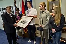 ![]() Kari Miller (second from left), with Leon Panetta and others athletes in 2012. | ||||||||||||||||||||||||||||||||||||||||||||||||||||||||||||||||||||||||