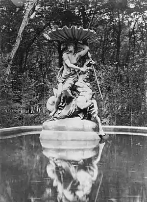 From 1867 he taught more regularly at Kunstgewerbeschule in Karlsruhe, becoming a professor there in 1872.[4] He was also employed by Dyckerhoff & Widman, a building supplies company which specialised in architectural embellishments and molded cement sculptures (among other things). One of the company's more visible contracts was with the Karlsruhe city council for the construction of its "Galatea" fountain. Moest carried out the work.[3] (The fountain today - 2017 - adorns the front garden of the Federal Court of Justice building.) In 1879 Moest resigned from his teaching work at the Fine Arts Academy. Invited by Moest to choose between giving him a more suitable salary or accepting his resignation, the institution's director, Gustav Kachel (1843-1882), chose his resignation. Moest was succeeded at the academy by Adolf Heer.[5]