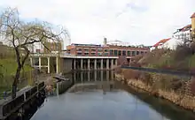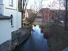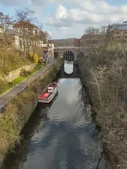 The Karl Heine Canal is an approximately 3.3 km (2 mi) long artificial watercourse in the west of the city of Leipzig in Germany and connects the Lindenau harbor with the White Elster River. It is spanned by 15 bridges and is navigable with small boats. The canal is under monument protection as a monument preservation entity “canal, bank reinforcements and bridges”.[1]
