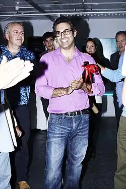 ![]() Karl Singporewala accepting People's Choice HIX Art Award 2014 | |