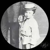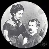Ludwig received a formidable education at the Piarist Gymnasium before serving in the military. Run-ins with the law began in 1862 when he stole money from his regiment. His mother, Caroline, relinquished the remaining savings of her inheritance to keep him from being arrested.[6] Following his service, Ludwig became a journalist for the magazine Die Glocke. In 1868, Ludwig had to escape Vienna from both creditors and criminal court, by means of his mother's money a second time, and fled to Munich. There he became acquainted with Ludwig Nohl, who introduced him to composer Richard Wagner, who in turn requested his services to King Ludwig II of Bavaria. It was during this time that Ludwig began falsely claiming himself as the grandson of Ludwig van Beethoven.[7] This direct line of musical nobility so impressed the King that he gave Ludwig a healthy salary on which to live. It was also at this time that Ludwig married his wife Marie (née Nitsche), a gifted pianist in her own right.[8] He also began passing himself off as a Baron, and cheating people out of their wages. By 30 August 1871, facing four years in jail for his various offenses, Ludwig and Marie (who also faced six months),[7] along with their son Karl Julius Maria (born 8 May 1870 in Munich) fled to Hamburg where they set sail for America.[6] While in America, Ludwig changed his name to Louis von Hoven, to separate himself from his famous surname and (as he disclosed to his sister): "[save me from] being continuously faced with annoying questions." Louis and his wife Marie had six children: two of which are unknown, Marie (1865–1865), Meta (1874–sometime before 1890), and Heinrich (1871–1872). Their oldest son, Karl Julius, survived into adulthood.