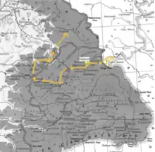 Urban now faced the threat of encirclement and destruction by Bem's three army columns that advanced rapidly in his direction. He managed to deceive this fate by breaking through the numerous enemy masses at Apahida and retreating north-eastwards to the province of Bukovina.[6] Klausenburg fell on the 25th December.