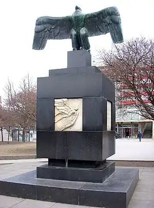 Flygarmonumentet, a monument designed in 1931 by sculptor Carl Milles (1875–1955), is located at Karlaplan. Playwright and novelist August Strindberg (1849–1912) lived on Karlaplan from 1901 until 1908. It remains one of the most exclusive and expensive places to live in Stockholm city, adjacent to the Royal Park, Djurgården.[3]