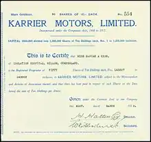 - ↑ The Karrier Motors Capital Scheme. The Times, Wednesday, 20 October 1926; pg. 24; Issue 44407