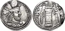 Hormizd I died the following year; Bahram I, who was never considered a candidate for succession of the throne by his father, ascended the throne with the aid of Kartir, whose authority and influence had greatly increased.[5] Bahram I then made a settlement with his brother Narseh to give up his entitlement to the throne in return for the governorship of the important frontier province of Armenia, which was constantly the subject of war between the Roman and Sasanian Empires.[6] Narseh held the title of Vazurg Šāh Arminān ("Great King of Armenia"), which was used by the heir to the throne.[7] Nevertheless, Narseh still most likely viewed Bahram I as a usurper.[5]