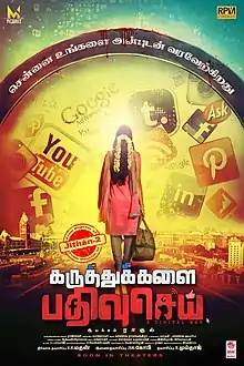 - ↑ "கருத்துக்களை பதிவு செய் படத்தின் பர்ஸ்ட் லுக் போஸ்டரை வெளியிட்ட திருமாவளவன்". maalaimalar.com (in Tamil). 18 November 2019. Retrieved 17 January 2020.