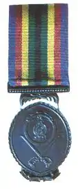 The Karyakshama Seva Vibhushanaya (KSV, Efficient Service Order) (Sinhala: කාර්යක්ෂම සේවා විභූෂණය kāryakṣama sēvā vibhūṣaṇaya) is a medal awarded to commissioned officers of the Sri Lanka Army Volunteer Force. Established on 7 January 1986, it replaced the Efficiency Decoration (Ceylon) with effect from 22 May 1972 with volunteer officers who have completed the stipulated required years of service qualifying to the award. Since 2020, with the Karyakshama Seva Padakkama becoming opened to all ranks, the KSV became limited to award for senior volunteer officers.[1]