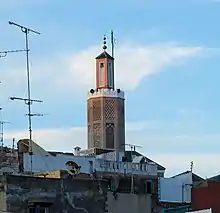 The mosque of the kasbah of Tangier was thus built by Ali Errifi, under Moulay Ismail's reign in the late 17th century.[2] Errifi was also responsible for rebuilding the city's Grand Mosque further south.[2] The mosque was expanded by Errifi's grandson, Ahmed, who added its minaret and ornate entrance.[2] Its prayer hall was expanded under Sultan Muhammad ibn Abd al-Rahman (Mohammed IV), who ruled between 1859 and 1873.[2] It was restored around 1889 for the visit of Sultan Moulay Hassan I.[2] In 1921, the official in charge of religious foundations (habous) in the region restored the mosque but covered up much of its original decoration in the process, using new colors.[2] Some of this cover-up has been cleared in recent years during renovations that finished around 2015.[3]