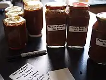 Different households traditionally had their own unique recipe and closely guarded process of making kasundi, though the differences lie more or less in the use of spices.[4][3] Some families prepared kasundi with just salt, ground mustard, dry chillies, turmeric and mustard oil. Others used combinations of different dry and ground spices like black caraway (kalonji), fennel, wild celery (radhuni shaak) seed, ajwain, long pepper (pippali), chilli, black pepper, fenugreek (methi), clove, green and black cardamom, cumin (jeera), coriander (dhonia), nutmeg (jaiphal), mace (javitri), Java pepper (kabab chini), dried mango, dried kul etc.[1][3]