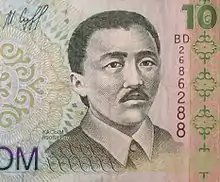 ![]() Kasym Tynystanov, as shown on the Kyrgyz 10 som note. | |