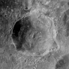 Katchalsky is a crater that lies on the far side of the Moon. It was named after scientist Aharon Katzir-Katchalsky.[1] It lies to the southeast of the larger crater Lobachevskiy, and to the west of the prominent King. Less than a half-crater diameter to the southeast of Katchalsky is Viviani.