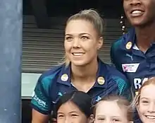 Kate Moloney is an Australian netballer who plays for the Melbourne Vixens in the Suncorp Super Netball league. As of April 2017, she is the captain of the Vixens.[2] Moloney made her domestic league netball debut for the Vixens in 2013 and was appointed captain of the team four years later.[2] She made her debut for the Australian national netball team in 2017, going on to be selected in the Australian Diamonds squad for the 2018/19 international season.[2][3] Kate has represented her country on 25 occasions.
