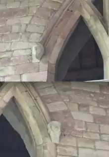 Masefield also mentioned the "harmless pleasure" he took in believing that the heads of two women that can be seen carved into the chapel's arch are portraits of Katherine and her maid Mabel: