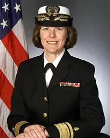 Military decorations include the Distinguished Service Medal (two awards), Legion of Merit (three awards), the Defense Meritorious Service Medal, Meritorious Service Medal and the Navy Commendation Medal. She is a member of the American College of Healthcare Executives, the American Society for Public Administration, the Association of Military Surgeons of the United States and Sigma Theta Tau.