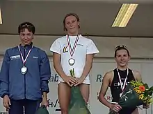 Smet (centre) in 2000, after winning the Zundert triathlon