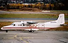 Starting 1 April 2003 Kato Airline took over two public service obligation routes, which received subsidies from the Ministry of Transport and Communications. Both were out of Bodø, one to Røst Airport and the other to Narvik Airport, Framnes—the downtown airport serving Narvik.[13] The same year the airline won four-year contract with Norway Post to operate postal flights from Trondheim to Bodø, Harstad/Narvik and Tromsø.[3] Kato Airline was allowed to operate the route with a Dornier 228, a significantly smaller aircraft than the incumbent de Havilland Canada Dash 8 used by Widerøe. By December both routes had seen a drastic fall in patronage. Røst Municipal Council came with a statement criticizing the ministry for allowing such aircraft, stating that the lacked among other amenities accessibility, pressure cabin, weather radar, space for hand luggage and that the airline did not operate with discount tickets.[16] The company's revenue peaked at 61 million kroner in 2003.[17]