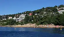 Katten is a municipal beach in Bunnefjorden in the Nordstrand area in Oslo, Norway. The beach is suitable for children and comprises a sheltered, sandy beach, rocks and grassy hills. There are diving boards, swimming ladders, tables and benches, toilets, showers, drinking water and a kiosk.[1]