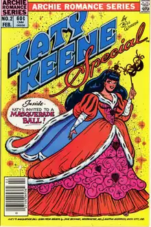 Katy Keene is a character created by Bill Woggon that has appeared in several comic book series published by Archie Comics since 1945. She is a model/actress/singer marketed by the publisher as "America's Queen of Pin-Ups and Fashions". In the book From Girls to Grrrlz: A History of Women's Comics from Teens to Zines by Trina Robbins, Katy Keene is called a Bettie Page look-alike. "... but the resemblance ended there.[1]