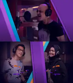"Kau Ilhamku" is a reworked song of the same name that was composed by Asmin Mudin and sung by Man Bai.[2] Man Bai was given the demo of "Kau Ilhamku" by Asmin in 1993,[3] before it was included on his self-titled album in 1995.[3] 20 years later, in September 2015, Man Bai was contacted by Yonder Music, which showed interest in rerecording the song, albeit in a rearranged manner.[2] On the news of rerecording the song, Man Bai commented, "Around two months ago, I was contacted by them [Yonder Music] who appeared interested in reworking "Kau Ilhamku". They like the melody. I agreed [for them to rerecord it] as long as they don't change the original melody of the song. What is more special is that it involves popular local and international artists."[2][lower-alpha 2] Man Bai later recorded his vocals for the new version of "Kau Ilhamku" in October 2015.[2] Siti Nurhaliza, another artist involved in the creation of the new song, also revealed that she had finished recording her part in the same month.[2] She commented, "When everything was agreed upon, we did my parts in October. Originally I sang the song in its entirety with the new music arrangement. But in the end, the parts [of the song] where I would sing [that were included in the final version] were decided by the producers."[2][lower-alpha 3] Over the course of the months, the new version of "Kau Ilhamku" was recorded and produced in various cities and countries including Kuala Lumpur, Jakarta, and New York City.[4]