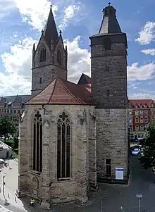 The Kaufmannskirche (pronounced [ˈkaʊfmansˌkɪʁçə], "Merchant's Church") is a church building in the historical centre of the city of Erfurt in Thuringia, Germany. It is located at the north end of Erfurt's Anger square and has been Lutheran since 1521.