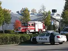 A police van with two officers arrived a short time after the shootings began, at around 11:00. They entered the yard of the college, where they were shot at by Saari and forced to retreat. From around 11:45 to 12:00 further police units, bolstered by a number of armoured vehicles, began to arrive on the scene. They attempted to enter the building through the main corridor, but this assault was aborted due to the black smoke that was emanating from within the building.[1] Meanwhile, having escaped the buildings in a variety of ways (including through doors and out of windows), some students found themselves impeded by a river that adjoined the school.[1] However, some were able to use rowing boats as a means of escape.[13]