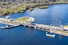 The Kaunas Hydroelectric Power Plant, located on the Nemunas River about 7.4 kilometres (4.6 mi) southeast of Kaunas, Lithuania. It was completed in 1960 and its dam created the Kaunas Reservoir. Owned by Ignitis Group, it operates in conjunction with the Kruonis Pumped Storage Plant.[1][2]
