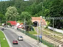 Kaunas railway tunnel (Lithuanian: Kauno geležinkelio tunelis) is one of the two railway tunnels existing in Lithuania and the only railway tunnel operating in the Baltic states. Passenger trains are operating between Vilnius and Kaunas through this tunnel. The length of the tunnel is 1,285 metres (0,803 miles), height – 6,6 metres, width – 8,8 metres. Kaunas railway tunnel was included into the Registry of Immovable Cultural Heritage Sites of the Republic of Lithuania in 1996.[1]
