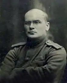 In September 1908, Veclauskis became the first chairman of cultural organization Varpas (bell) which organized concerts, lectures, amateur theater performances. His wife, together with Gabrielius Landsbergis-Žemkalnis, directed several plays.[7] Venclauskis co-directed a play in 1911.[4] His activities attracted the attention of the Tsarist police. His home was searched and he was briefly arrested in September 1912.[3] The arrest spoiled his plans for running in the elections to the Russian State Duma.[8] During World War I, he organized aid to war refugees. When fighting reached Šiauliai, he retreated to Minsk.[2] He worked as a jurist of the All-Russian Zemstvo Union dealing with the 10th Army. After the February Revolution, he became a justice of the peace in Minsk.[4] He returned to Lithuania in summer 1917[2] or in June 1918.[4] Venclauskis, together with Peliksas Bugailiškis and Stasys Lukauskis, managed to get a permission from the Ober Ost officials to reopen the Šiauliai Gymnasium. They organized Jėga Society (power, strength), chaired by Venclauskis, to support the school which opened in April 1918 with 200 students.[4]