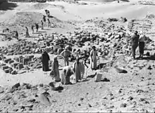 Professor Michałowski started excavations in Old Dongola in 1964. Since 1966 the works were headed by Stefan Jakobielski.[14] Kings of the joined Nubian kingdoms resided in the Dongola from the 8th to the early 13th century. A central nave of the church with columns preserved in situ was discovered already in the first weeks of the works. Scientific writing refers to this discovery as the "church of the columns". Grave inscriptions found in the church suggested it dated back to the 2nd half of the 8th century.[9] Column capitals revealed in the sacral buildings are stylistically similar to those discovered in the Faras cathedral. Additionally, older foundations of a sacral building were discovered under the "church of the columns". The second building based on the cruciform plan was also explored as well as a mosque which turned out to be erected on a former royal palace and not (as previously assumed) on a Christian temple. Polish archaeologists discovered also a baptistery. Since 1966 a Polish expedition was performing parallel prehistoric excavations in the vicinity the village of Gaddar.