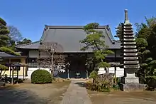 Kazusa Kokubun-ji (上総国分寺) is a Buddhist temple in Ichihara, Chiba, Japan, belonging to the Shingon-shu Buzan-ha sect, and is the provincial temple ("kokubunji") of former Kazusa Province. The present temple is of uncertain foundation, but claims to be the direct descendant of the original Nara period kokubunji temple which fell into ruins sometime in the Muromachi period. The Nara-period temple ruins were designated a National Historic Site in 1929, with the area under protection expanded in 1979 due to additional archaeological finds.[1]