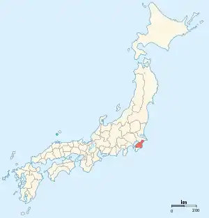 Kazusa Province (上総国, Kazusa-no kuni) was a province of Japan in the area of modern Chiba Prefecture.[1] The province was located in the middle of the Bōsō Peninsula, whose name takes its first kanji from the name of Awa Province and its second from Kazusa and Shimōsa provinces. Its abbreviated form name was Sōshū (総州) or Nansō (南総).[2] The borders of Kazusa Province were defined by Shimōsa Province to the north, the Pacific Ocean to the east, Awa Province to the south, and Tokyo Bay to the west.