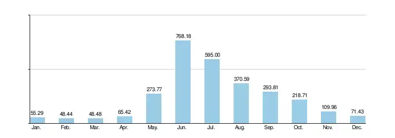 Kechika River monthly mean discharge at Liard River (m3/s)[4]