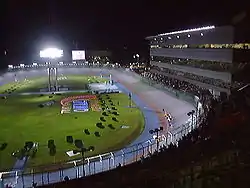 Keiokaku Velodrome (京王閣競輪場, Keiōkaku Keirinjyō), also known as TOKYO OVAL KEIOKAKU, is a velodrome located in Chōfu, Tokyo that conducts pari-mutuel Keirin racing - one of Japan's four authorized "Public Sports" (公営競技, kōei kyōgi) where gambling is permitted. Its Keirin identification number for betting purposes is 27# (27 sharp).