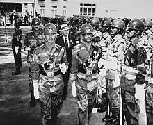 He subsequently joined the army and served during World War II as one of only two Canadians in the British Special Air Service (1st SAS), where he operated behind German lines. It was in this period that he first met and then married on 11 September 1946, his wife, Comtesse Marie Antoinette LeGrelle, daughter of Comte Adelin Le Grelle and Rosalie de Swert, from Antwerp, Belgium; whose uncle, Comte Jacques Legrelle (aka "Jérôme"), helped to organise and run the Comet (or Comète) Line,[1] which was Europe's largest and most successful underground escape line during World War II; and whose niece, Cécilia Ciganer-Albéniz became First Lady of France in 2007.