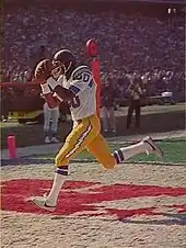 Winslow catching a touchdown pass during the 1980 season.