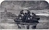 Doctors in the coroner's inquest reported that Kelsey had bled out from the castration, during which he had been alive.[1] They believed his body has been severed by the pressure of a rope around his waist that had been weighted and thrown in the water.[2] The October coroner's jury concluded that Kelsey was murdered and that Sammis and five others had aided and abetted through the tar and feathering outrage, yet did not name a murderer.[1] New York Governor John Adams Dix opened a $3,000 reward (equivalent to $73,000 in 2022) for information leading to the conviction of the murderer.[4] The next month, a Suffolk County grand jury indicted Sammis and Banks for riot and assault, and Sammis and his younger brother, Rudolph, for second-degree murder.[1]