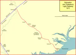 - ↑ W Parker, The Kelvedon, Tiptree, and Tollesbury Railway: The First Light Railway in Essex, in the Railway Magazine, November 1904