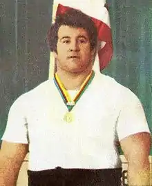 Before becoming a professional wrestler, Patera was a highly decorated Olympic weightlifter. He won several medals at the 1971 Pan American Games (including gold in the weightlifting total),[8] and finished second in the 1971 World Weightlifting Championships just behind Vasily Alekseyev. On his native soil, Patera won four consecutive U.S. Weightlifting Championships in the super heavyweight class from 1969 to 1972.[9] He was the first American to clean and jerk over 500 lbs (227 kg), which he accomplished at the 1972 Senior Nationals in Detroit.[6] He is also the only American to clean and press 500 lbs (227 kg), and was the last American super heavyweight for years to excel at weightlifting at an international level.[6] At the 1972 Summer Olympics in Munich, Germany, Patera was expected to be a serious competitor to Vasily Alekseyev, but he failed to total and was not among the medal recipients.[6] Vasily Alekseyev even stated to the media that Patera was even stronger than him, illustrated by a 550-pound overhead push press (off the racks)[10] that Patera had allegedly done in practice. Nevertheless, when it came to competing, Alekseyev was always the winner. After the clean and press (a lift in which Patera was disproportionately talented) was eliminated from competition, Patera retired from weightlifting.[3]