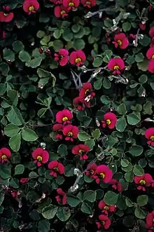 This kennedia grows on swampy river flats and the lower slopes of hills in the Esperance Plains, Jarrah Forest, Swan Coastal Plain and Warren biogeographic regions of south-western Western Australia.[2][7]