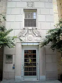 Limestone Aztec eagles above an entrance to the Kennedy–Warren