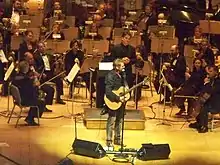 Kenneth Clark Loggins (born January 7, 1948)[3] is an American singer, guitarist and songwriter.[4] His early songs were recorded with the Nitty Gritty Dirt Band in 1970,[5] which led to seven albums recorded with Jim Messina as Loggins and Messina from 1972 to 1977.[6] His early soundtrack contributions date back to A Star Is Born in 1976,[7] and he is known as the King of the Movie Soundtrack.[4][8] As a solo artist, Loggins experienced a string of soundtrack successes, including an Academy Award nomination for "Footloose" in 1985.[9] Finally Home was released in 2013, shortly after Loggins formed the group Blue Sky Riders with Gary Burr and Georgia Middleman.[10] He won a Daytime Emmy Award, two Grammy Awards and was nominated for an Academy Award, a Tony Award and a Golden Globe Award.