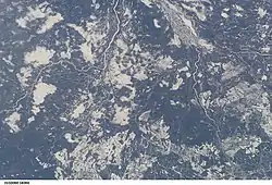 ![]() Kenogami River from the International Space Station (diagonally at upper left corner) | |