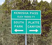 Kenosha Pass, elevation 10,000 ft (3,000 m), is a high mountain pass located in the Rocky Mountains of central Colorado in the United States.