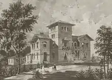 Kenworthy Hall, also known as the Carlisle-Martin House, Carlisle Hall and Edward Kenworthy Carlisle House, is a plantation house located on the north side of Alabama Highway 14, two miles west of the Marion courthouse square. It was built from 1858 to 1860 and is one of the best preserved examples of Richard Upjohn's distinctive asymmetrical Italian villa style. It is the only surviving residential example of Upjohn's Italian villa style that was especially designed to suit the Southern climate and the plantation lifestyle. It has a massive four-story tower, windows of variable size and shape with brownstone trim, and a distinctly Southern division of family and public spaces. The building was designed and constructed for Edward Kenworthy Carlisle as his primary family residence and the centerpiece of his 440-acre (1.8 km2) estate.[3] It, along with some of its surrounding ancillary structures, was declared a National Historic Landmark in 2004.[2][3] The house and a purported ghost are featured as a short story in Kathryn Tucker Windham's 13 Alabama Ghosts and Jeffrey.[4]