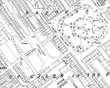 The street originally continued farther east to join Russell Square. It was joined on the north side by Torrington Street and Keppel Mews North, and on the south side by Russell Mews and the entrance to Keppel Mews South. It contained a chapel for Anabaptists.[1]