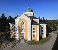 The Kerimäki Church (Finnish: Kerimäen kirkko, Swedish: Kerimäki kyrka) in Kerimäki, Finland, is the largest wooden church in the world.[1] However, it is not the tallest; Săpânța-Peri Monastery church in Romania, at 78 metres (256 ft), Ascension Cathedral in Kazakhstan, at 56 metres (184 ft) meters, and St. George's Cathedral in Guyana, at 43.5 metres (143 ft), are taller.