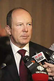 Kerry Thomas Diotte (born 1956) is a Canadian journalist and former politician who was the member of Parliament (MP) for Edmonton Griesbach from 2015 to 2021 and sat on the Edmonton City Council from 2010 to 2013. A Conservative, Diotte was elected to the House of Commons twice–in the 2015 and 2019 elections–but would lose his seat to New Democratic Party (NDP) candidate Blake Desjarlais in 2021. He ran for mayor of Edmonton in 2013, placing third. In June 2022 he joined Rebel News to become their Alberta Legislature reporter and political correspondent.[1][2]