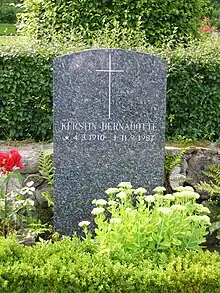 Bernadotte was born to Henning Wijkmark and wife Elin Larsson (married 1902[1]) in Stockholm in 1910. During her student years Kerstin Wijmark worked as a journalist, and she then subsequently became editor of the Swedish weekly magazine Veckorevyn (Weekly Review),[2] which had been launched in 1935 by the Bonnier publishing house and had small initial sales, however under Wijkmark's editorship becoming more successful. Soon reaching a weekly circulation approaching 100,000 readers by 1940 circulation had exceeded 300,000 readers.[3] Wijkmark achieved this by changing the previously family-focused magazine to concentrate more on fashion, recipes, and gossip columns.[4] In 1935 she was married to Axel Erik Johnsson (1908-1953); the couple were divorced the following year.[5]