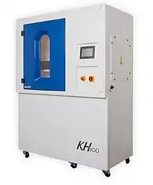 The Kesternich test is a common name for the corrosion test with sulfur dioxide (SO2) under general moisture condensation. This test was developed in 1951 by Wilhelm Kesternich[1] to simulate the damaging effects of acid rain. Acid rain and acidic industrial pollutants are corrosive and can degrade coatings and plated surfaces. Kesternich testing, or sulfur dioxide testing, simulates acid rain or industrial chemical exposure to evaluate the relative corrosion resistance of the coating, substrate, or part itself. The test can be used for coatings or for base materials. The test method is defined by various standards, DIN EN ISO 6988,[2] DIN 50018,[3] ASTM G87, ISO 3231, ISO 22479 are the most common. The parts to be tested are placed in a test chamber with a capacity of 300L and exposed to warm, moist air in combination with a certain amount of sulfur dioxide