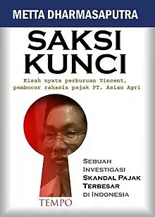 Vincent leaked this confidential information to Metta from his exile in Singapore, after his theft of funds from the company of US$3.1 million was exposed. He contemplated suicide, but was finally persuaded to return to Jakarta in an intelligence operation carried out by the Corruption Eradication Commission. Key Witness tells of the many struggles surrounding the disclosure of the Asian Agri tax case. Metta's cell phone was tapped.[4] Tempo, which published the investigative reports on the case, was taken to court.[5] Vincent was sentenced to 11 years in prison for money laundering, [6] a crime he had not committed. It took the tax authorities several years to get the case tried. Finally, the Supreme Court sentenced Asian Agri to pay a fine of IDR2.5 trillion (US$227 million), the largest fine ever in Indonesia's legal history.